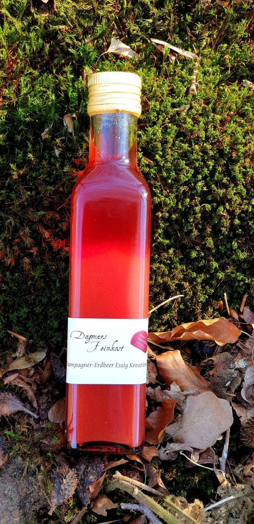 Zutaten: Champagner, Erdbeeren, Wasser, Essigessenz, Rohrzucker